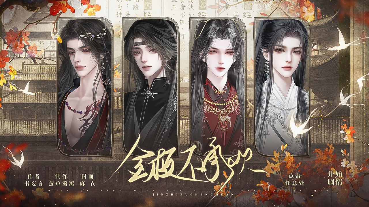 立意:人生由自己掌控。昔日的“江湖第一神剑”蔺天涯,为了寻找当年一见倾心的戏子,隐藏身份来到碧梧楼,成为了做杂活的伙计。然而,老友警告自己,那位如玩偶般漂亮的美人,也许不过是一条美丽而恐怖的疯狗。温柔而懦弱的人、冷峻却心软的人……蔺天涯不知道的是,他所做的一件件小事,却在改变身边许多人的命运……【注意】兄弟情作品,有强制剧情,可能会给一些玩家造成困扰。可攻略线:星夜线/赤鸟线【鲜花信息】序章+第一章为free试玩(约8万字),大礼包20花,野花上限5朵。【更新信息】通常每周日更新,如有特殊情况会评论区说明。【联系方式】无门槛聊天**:618978924【版权信息(授权)】【全局信息】剧情&制作